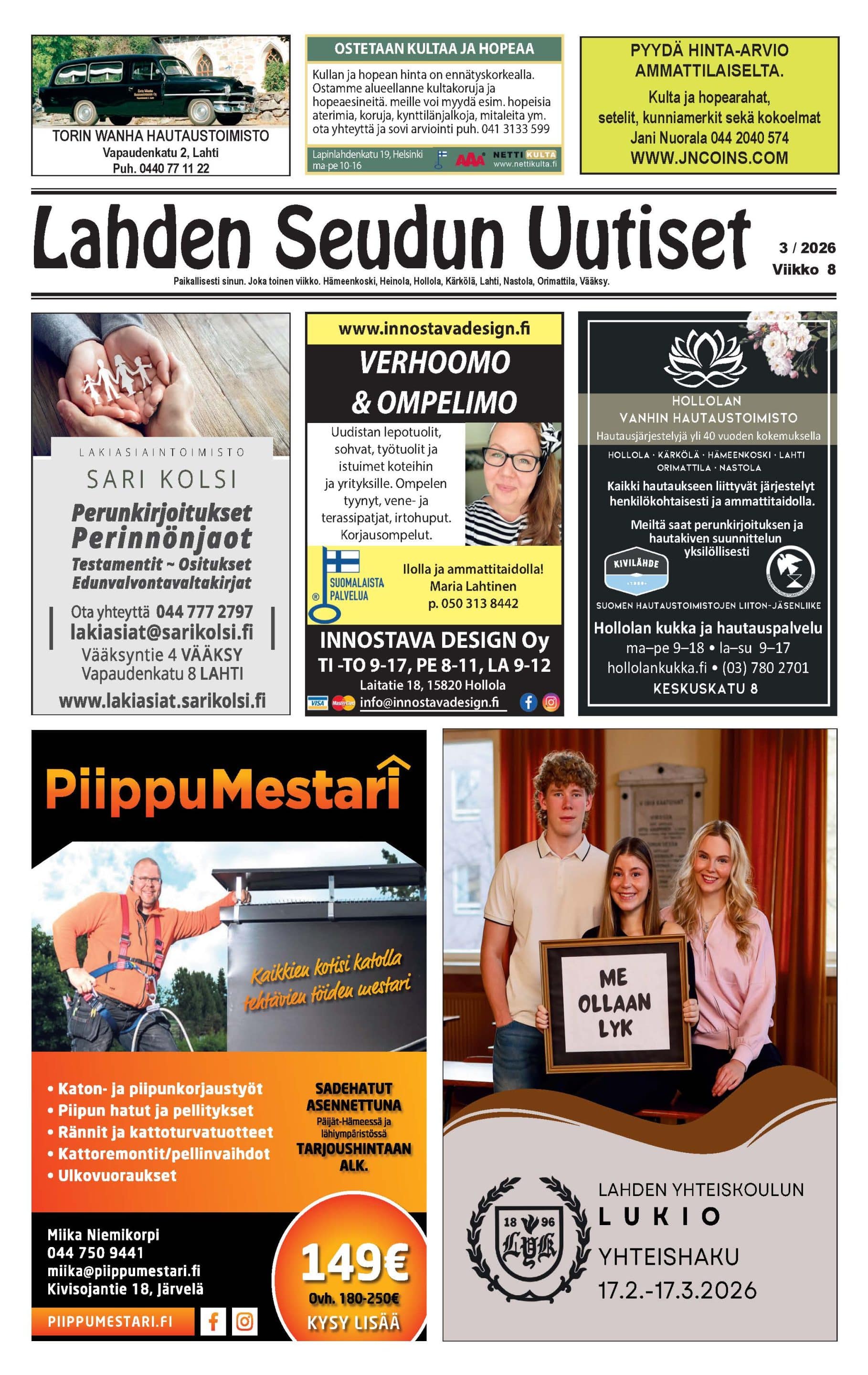 Lahden Seudun Uutiset on vuodesta 2015 ilmestynyt paikallislehti, joka tuo tuoreimmat uutiset ja maukkaimmat puheenaiheet luoksesi kerran kahdessa viikossa. Lehden taustalta löytyy innokas ja aktiivinen tekijäjoukko, joka haluaa kehittyä ja kehittää lehteä aina paremmaksi. Kyseessä on perheyritys, jossa vuonna 2023 ruoriin astui Niina Ojansivu.