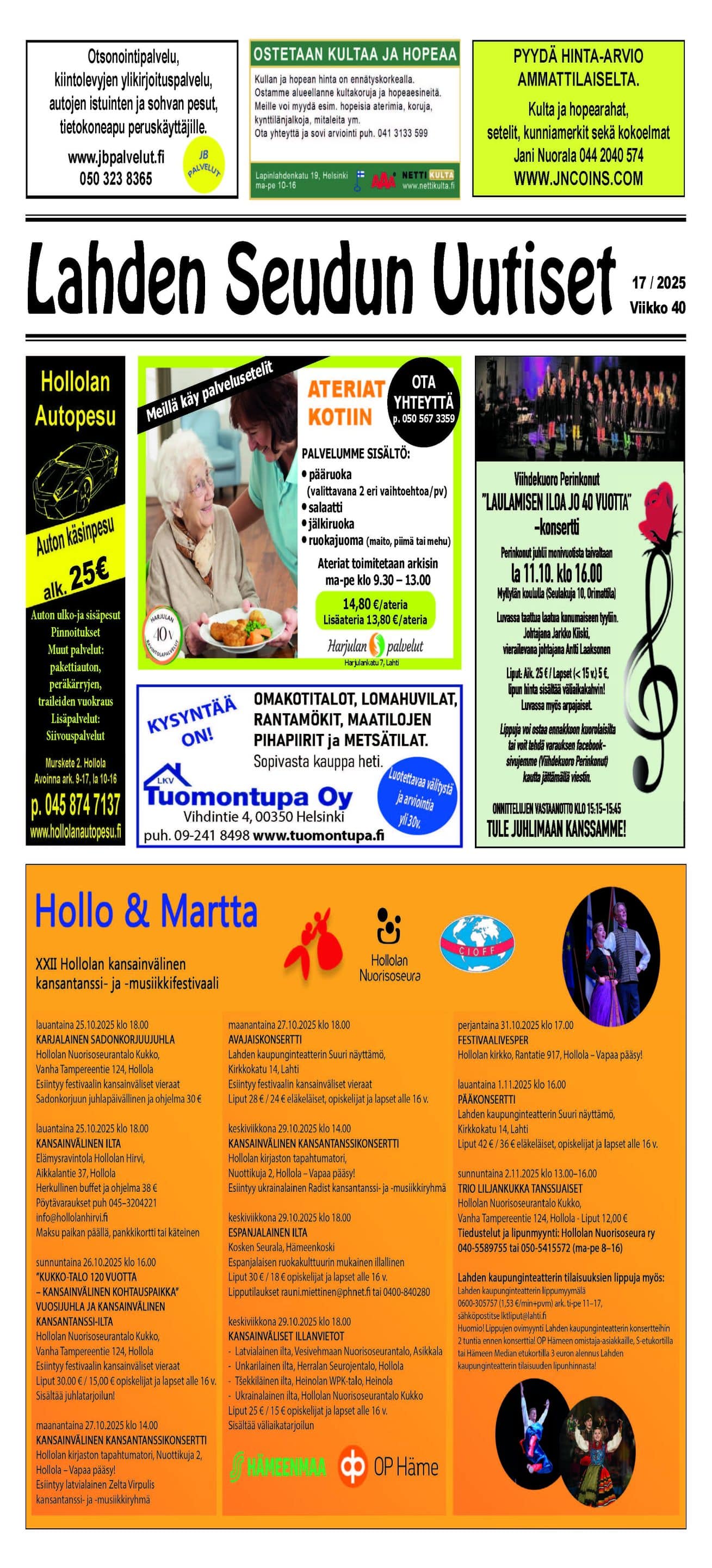 Lahden Seudun Uutiset on vuodesta 2015 ilmestynyt paikallislehti, joka tuo tuoreimmat uutiset ja maukkaimmat puheenaiheet luoksesi kerran kahdessa viikossa. Lehden taustalta löytyy innokas ja aktiivinen tekijäjoukko, joka haluaa kehittyä ja kehittää lehteä aina paremmaksi. Kyseessä on perheyritys, jossa vuonna 2023 ruoriin astui Niina Ojansivu.