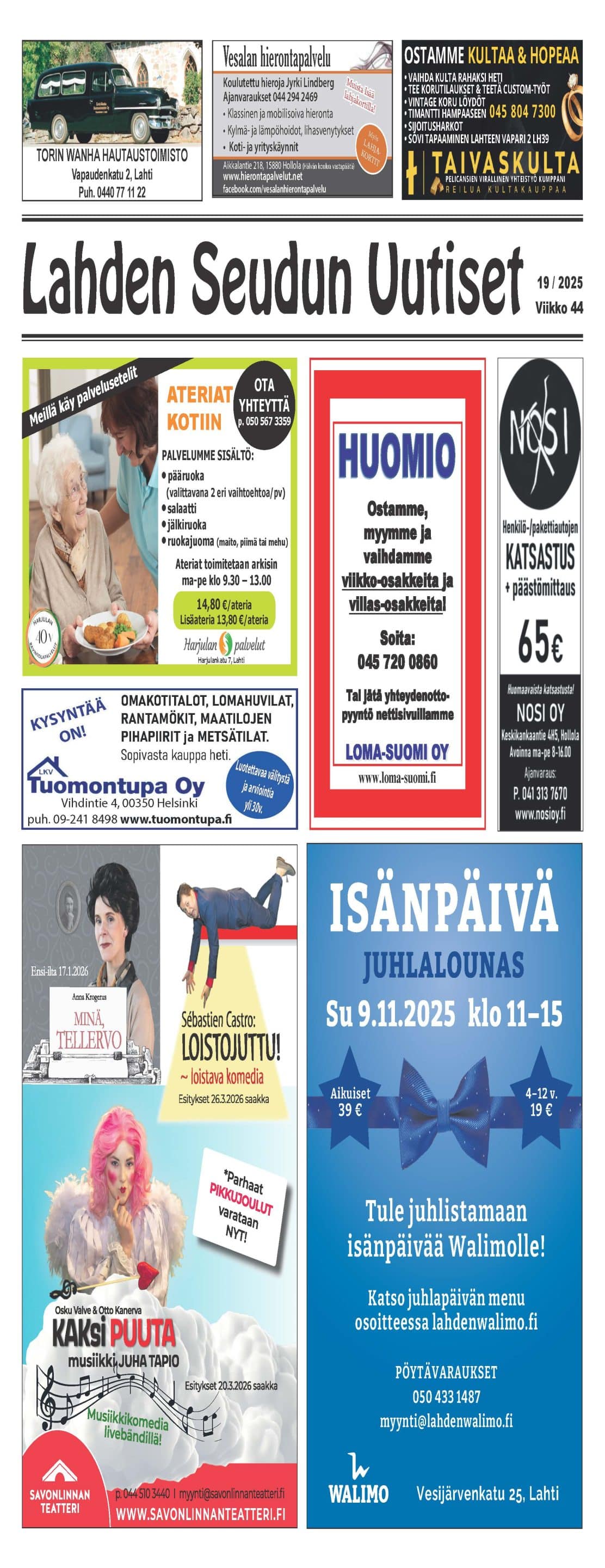 Lahden Seudun Uutiset on vuodesta 2015 ilmestynyt paikallislehti, joka tuo tuoreimmat uutiset ja maukkaimmat puheenaiheet luoksesi kerran kahdessa viikossa. Lehden taustalta löytyy innokas ja aktiivinen tekijäjoukko, joka haluaa kehittyä ja kehittää lehteä aina paremmaksi. Kyseessä on perheyritys, jossa vuonna 2023 ruoriin astui Niina Ojansivu.